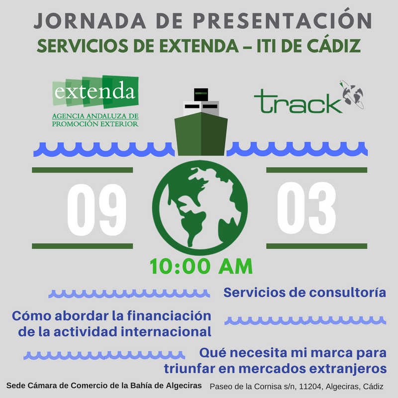 La nueva Oficina de Extenda en Algeciras, cuya sede se encuentra en la Cámara de comercio de Algeciras, y cuyos servicios son prestados por Track, comenzó a funcionar a partir de mediados de enero. Desde esta oficina se apoya con asesoramiento y consultoría especializada dirigida a la internacionalización de las empresas andaluzas de la provincia de Cádiz.